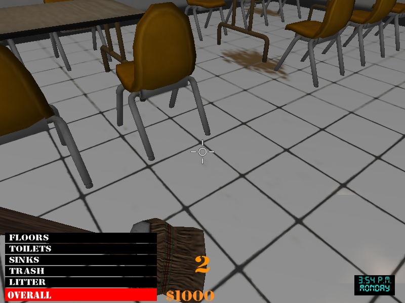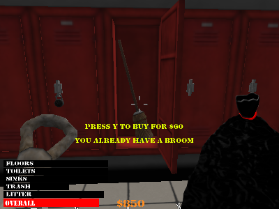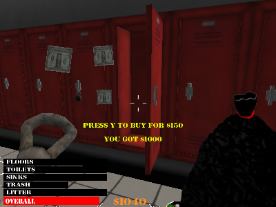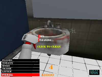 - Every day, there will be a certain amount of filth in the school, which will have a bar at the bottom associated with it. As you clean, the bars will shrink. When you are done cleaning, you can clock out at the punchclock at the entrance to the school. You will recieve wages based on how much work you did.