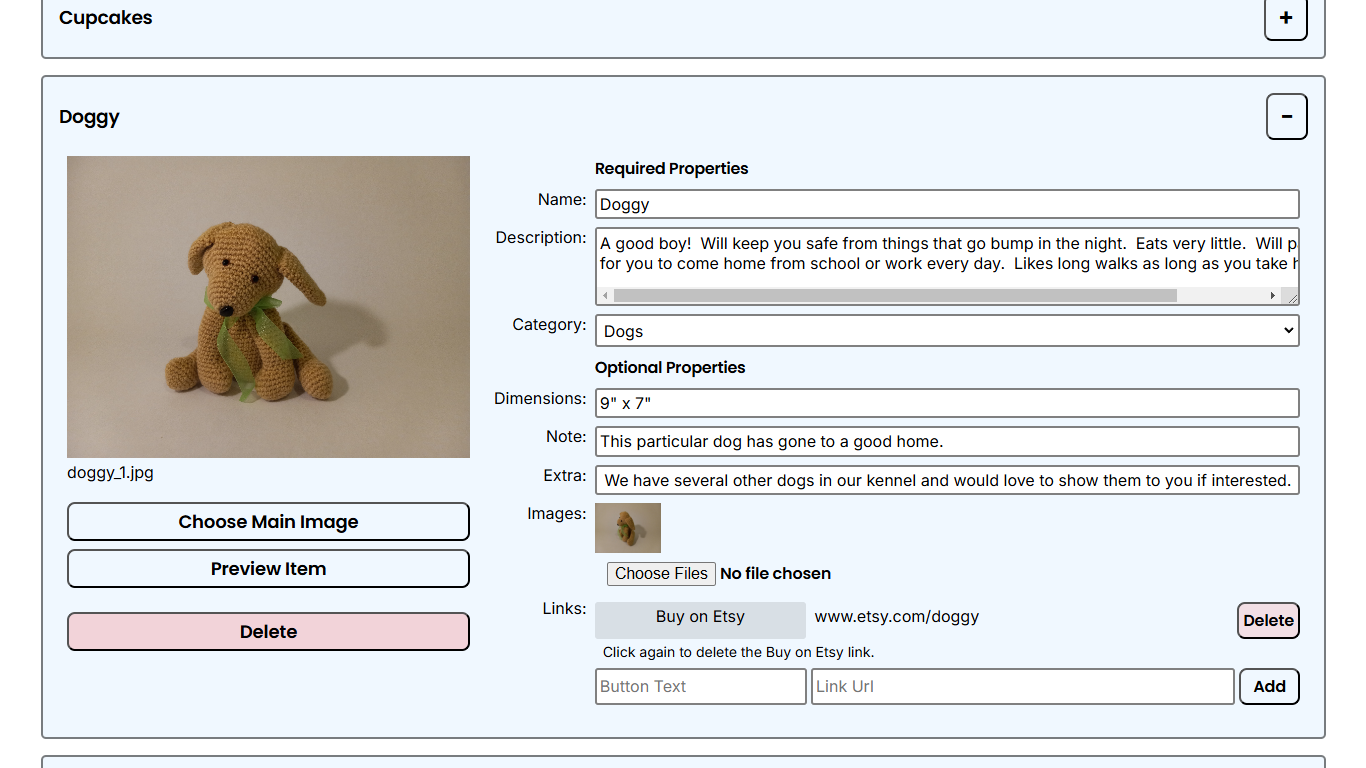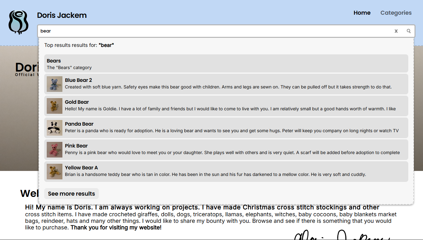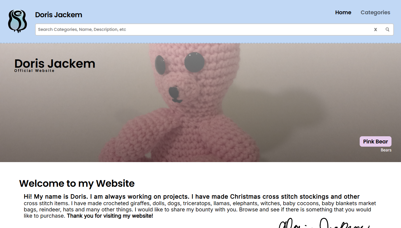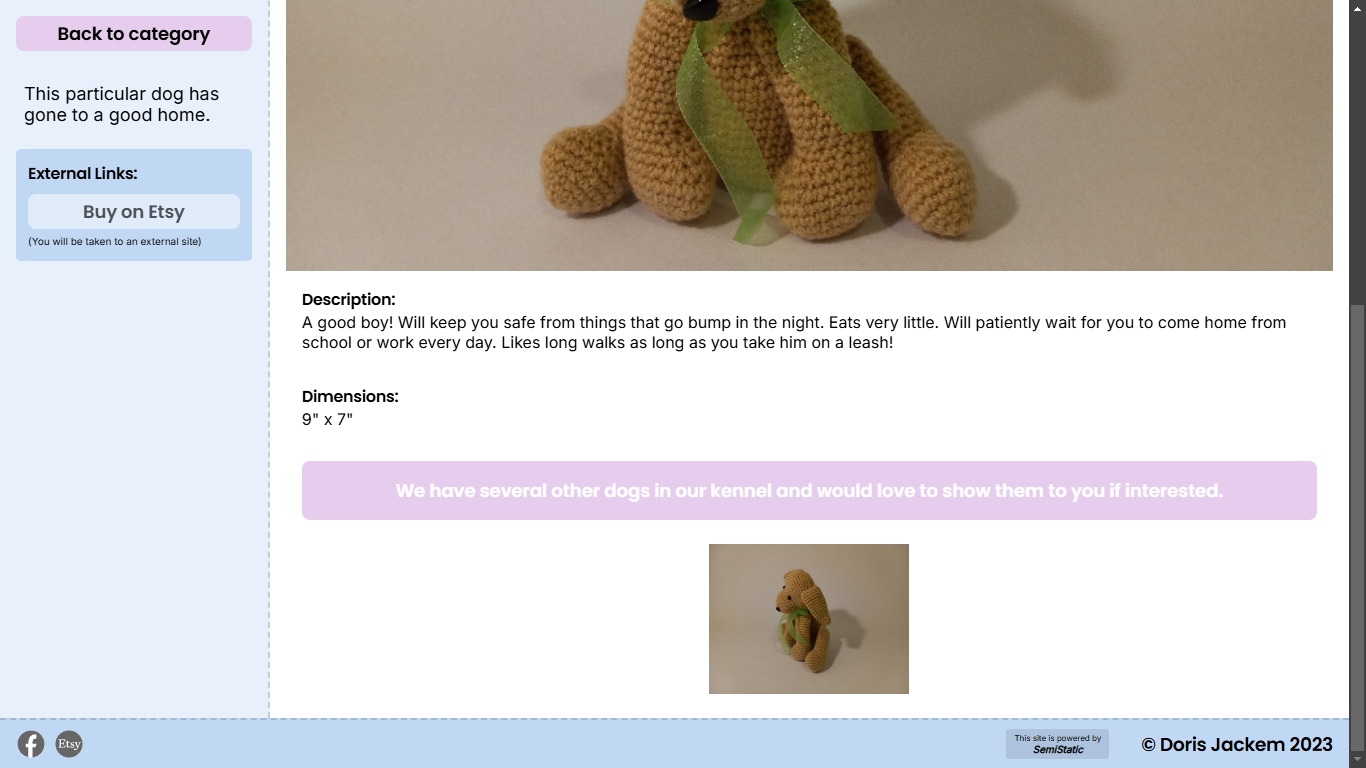 This is my mother's actual website for crafts, and a custom framework built with Angular/TypeScript.