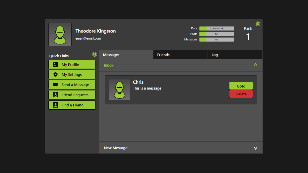 - Limits on posts, messages, and image data to keep hosting costs low and prevent spam