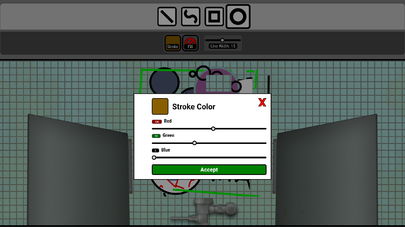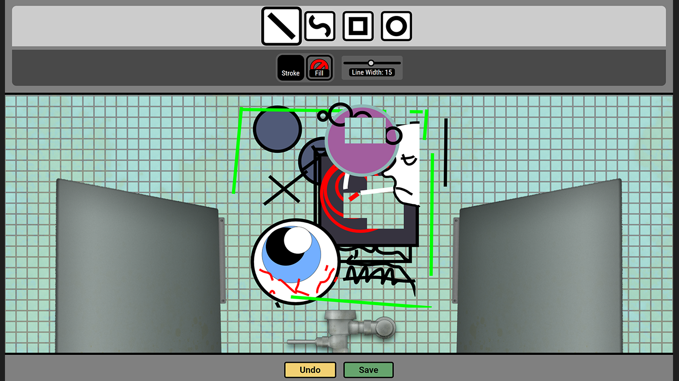 Vandal is the world's only restroom vandalism simulator. Users can draw straight or curved lines or any shape with over 16 million different stroke and fill colors!