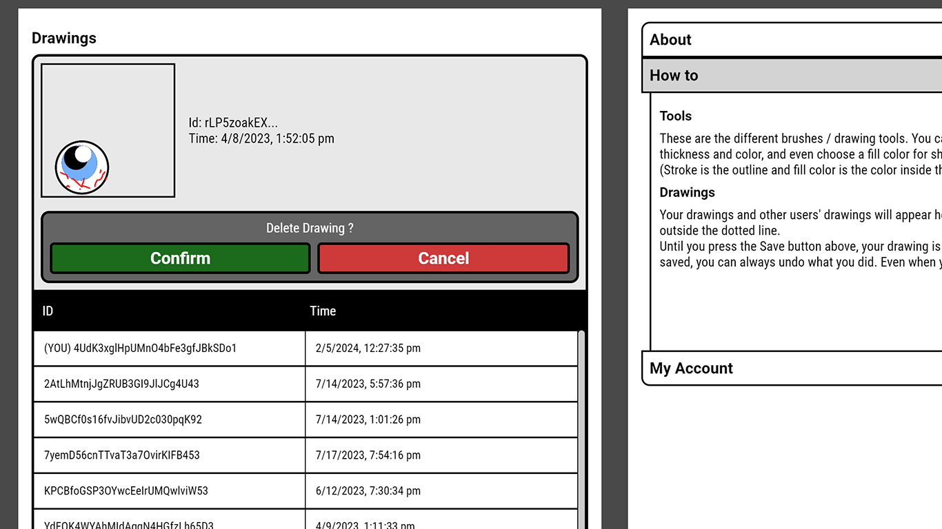Vandal is an online vector drawing app. Users are registered and logged in automatically using Google Firebase. Drawings are stored as coordinates/rgb colors in a Google Firestore database. Users can choose between 4 different drawing tools and can customize the shape fill color and stroke color/size to almost anything they want. With 12 undo slots, mistakes and tweaking your drawing are very easy. Drawings are repainted using a FILO queue so overlapping/layering are always respected as you work, unless the drawing itself is removed.
